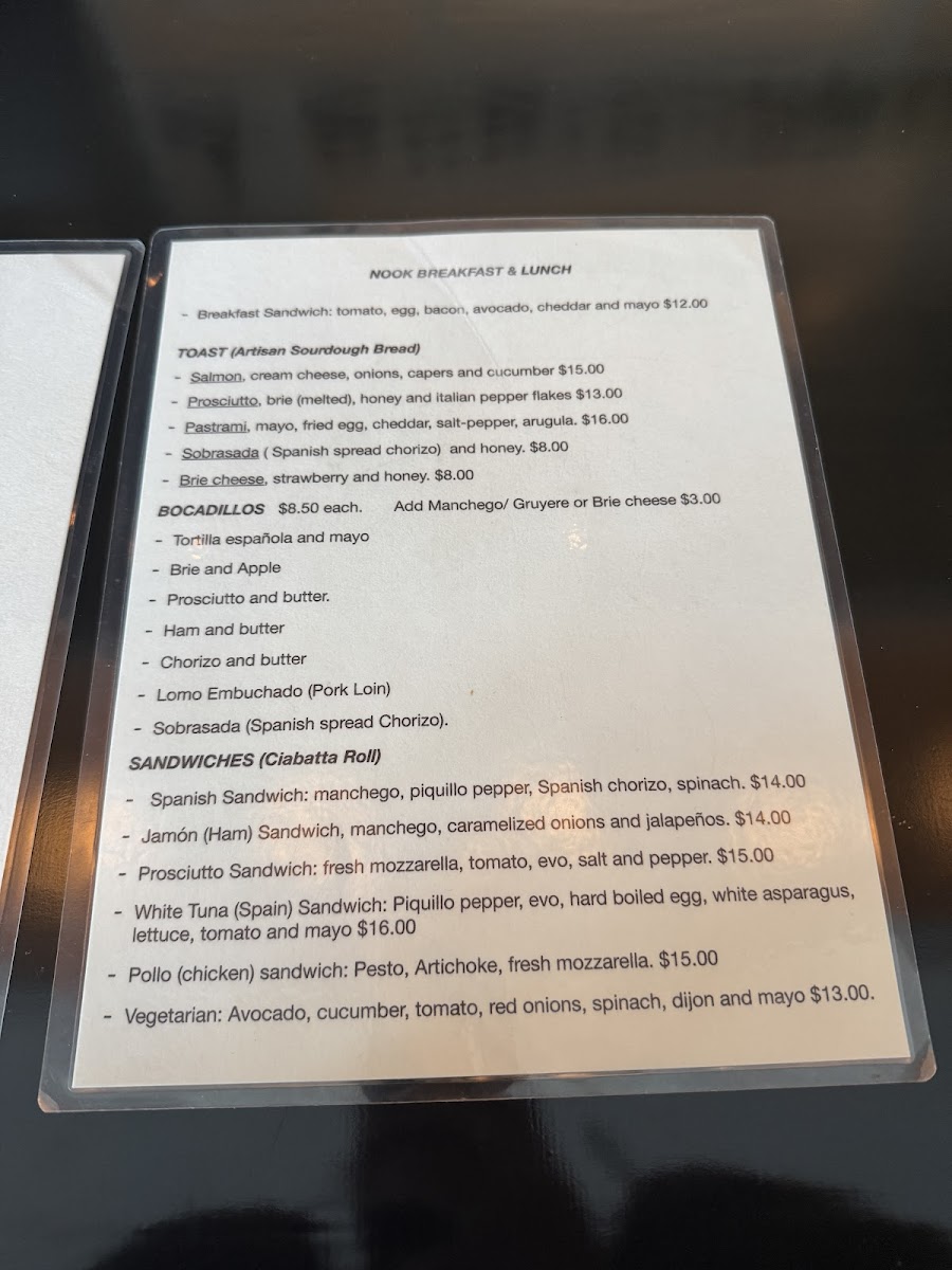 NOOK - CA 94109 Menu
